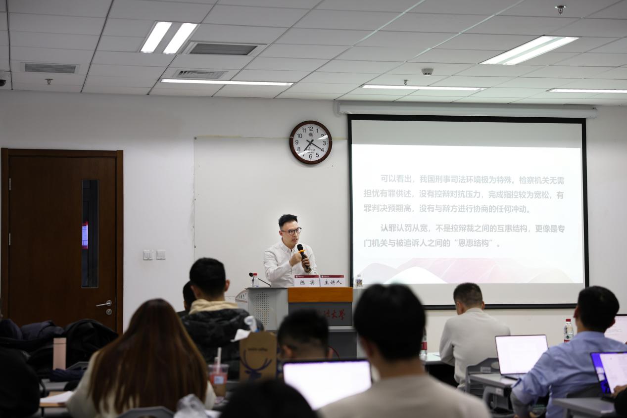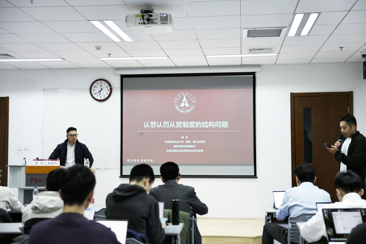 2025年11月20日晚上,由中国政法大学刑事诉讼法修改青年学术创新团队、刑事司法学院、科研处联合主办的中国政法大学刑事诉讼法修改青年论坛第十期、第二十三期“刑事一体化”青年学术沙龙暨青年学术沙龙第六十期在中国政法大学学院路校区教学图书综合楼0512教室成功举办。本期主题为“认罪认罚从宽制度的结构问题”,由中南财经政法大学教授、博士生导师陈实主讲,中国政法大学刑事司法学院副教授张可主持,中国政法大学法学院副教授白冰、中国政法大学诉讼法学研究院教授郭烁、《中国法学》副编审王楷、中国政法大学法学院教授王迎龙分别进行与谈。