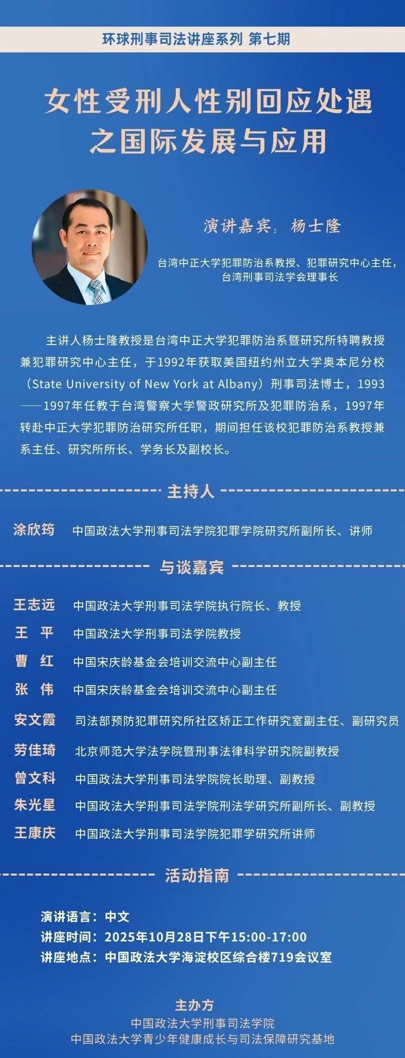 讲座地点:中国政法大学海淀校区综合楼719会议室