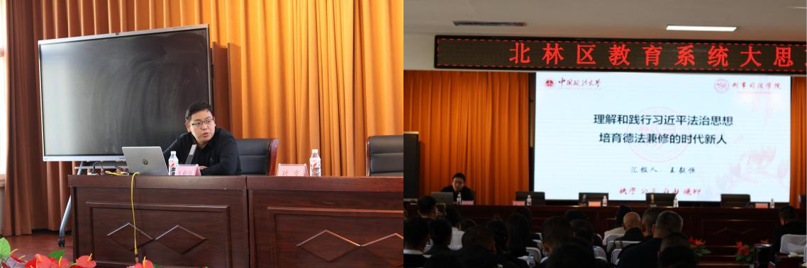 为深入贯彻落实党的二十大、二十届四中全会精神,全面落实教育部关于高校“双带头人”教师党支部书记“强国行”专项行动部署,中国政法大学刑事司法学院充分发挥在党建联建、普法宣传、思政课程、实践育人等方面的经验优势,依托学院专业特色与师资力量,积极传播习近平法治思想,推动法治教育深入基层。11月7日,学院“双带头人”教师党支部书记“强国行”专项行动团队、“明法之光”习近平法治思想宣讲团走进黑龙江省绥化市北林区,于绥化市第三中学会议室成功举办“北林区教育系统大思政课”系列讲座。此次活动是学院持续深化校地合作、践行社会责任的重要举措,旨在以习近平法治思想赋能区域教育高质量发展。