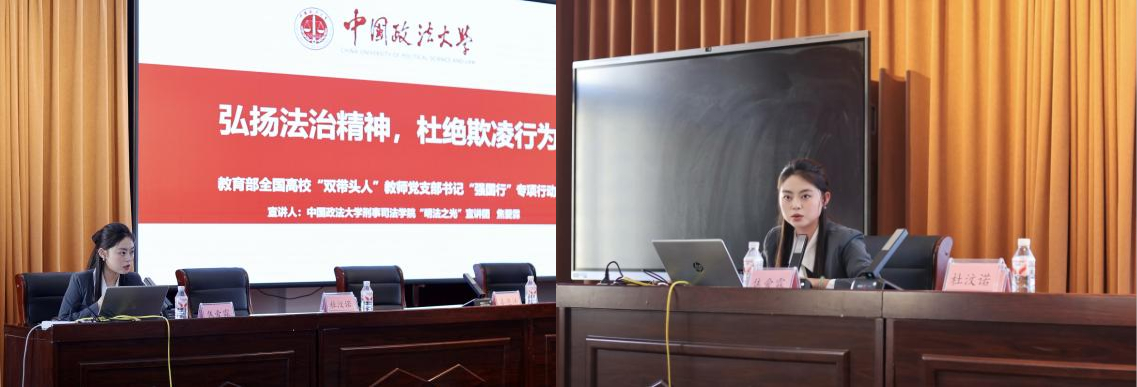 宣讲团成员焦爱霖以《弘扬法治精神,杜绝欺凌行为》为题,系统剖析校园欺凌的社会危害与法律责任,用一个个案例生动阐释师生面对校园欺凌事件的应采取的具体举措,倡导构建和谐安全的校园环境。